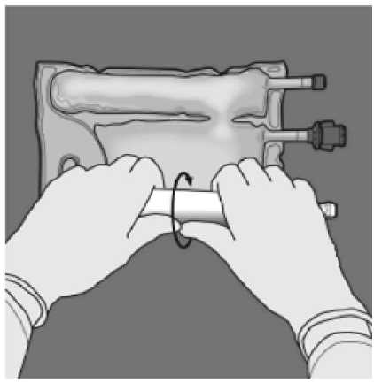 4. Basamak: Daha sonra aynı işlem, amino asit ve glukoz çözeltilerini içeren odacıklararasındaki separatör tümüyle açılana kadar bu defa daha önce baskı uygulamış elle torba Daskısına doğru katlanırken, torbayı katlamak için kullanılan elle baskı uygulanmalıdır.